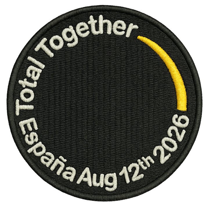 Celebrate the 2026 Total Solar Eclipse with this embroidered patch featuring the Total Together arc and the date of totality across Spain. The design captures the dramatic moment when the […]